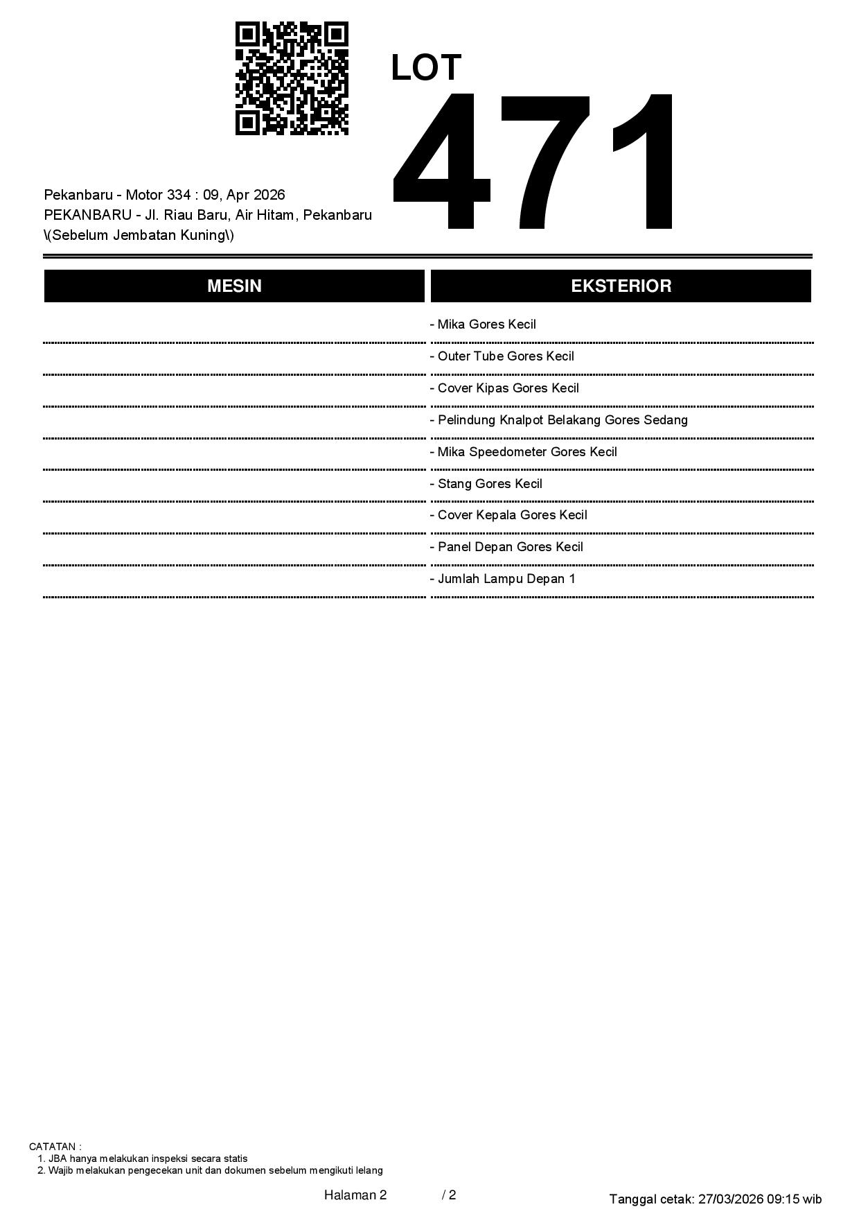 2. Peserta lelang wajib cek unit & dokumen