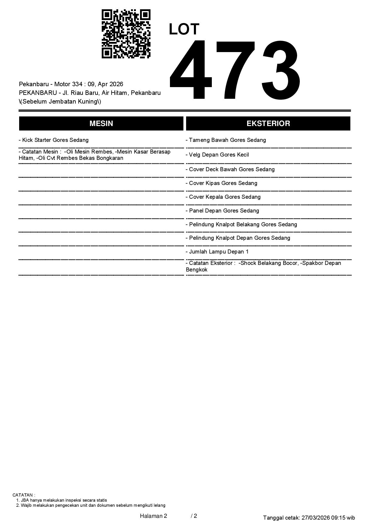 2. Peserta lelang wajib cek unit & dokumen