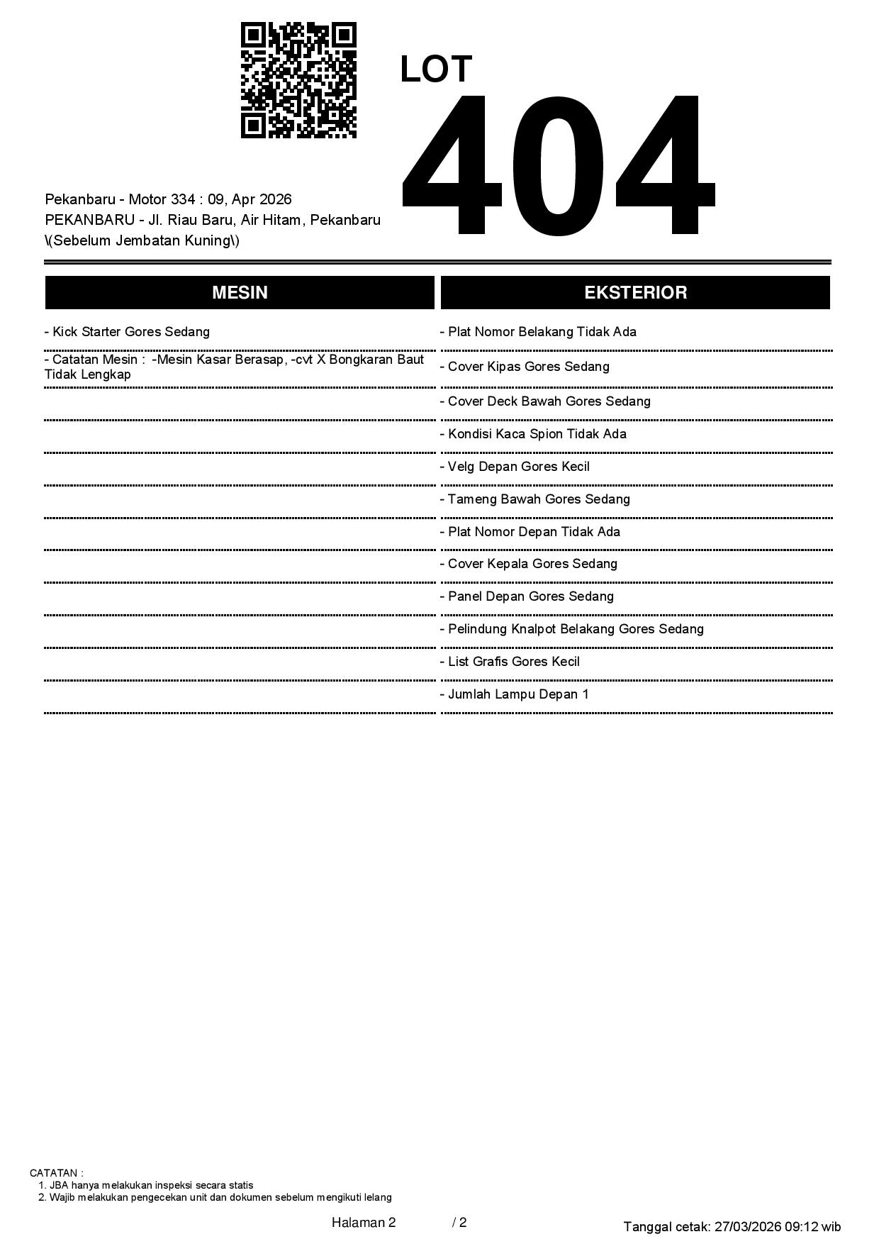 2. Peserta lelang wajib cek unit & dokumen
