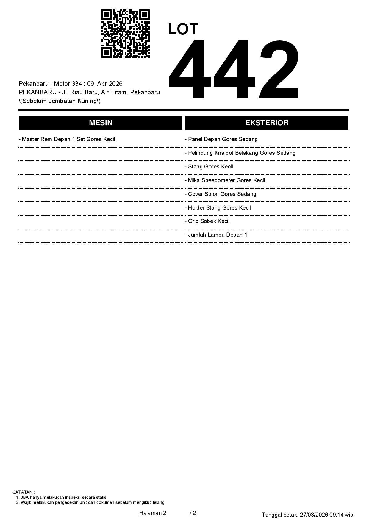 2. Peserta lelang wajib cek unit & dokumen