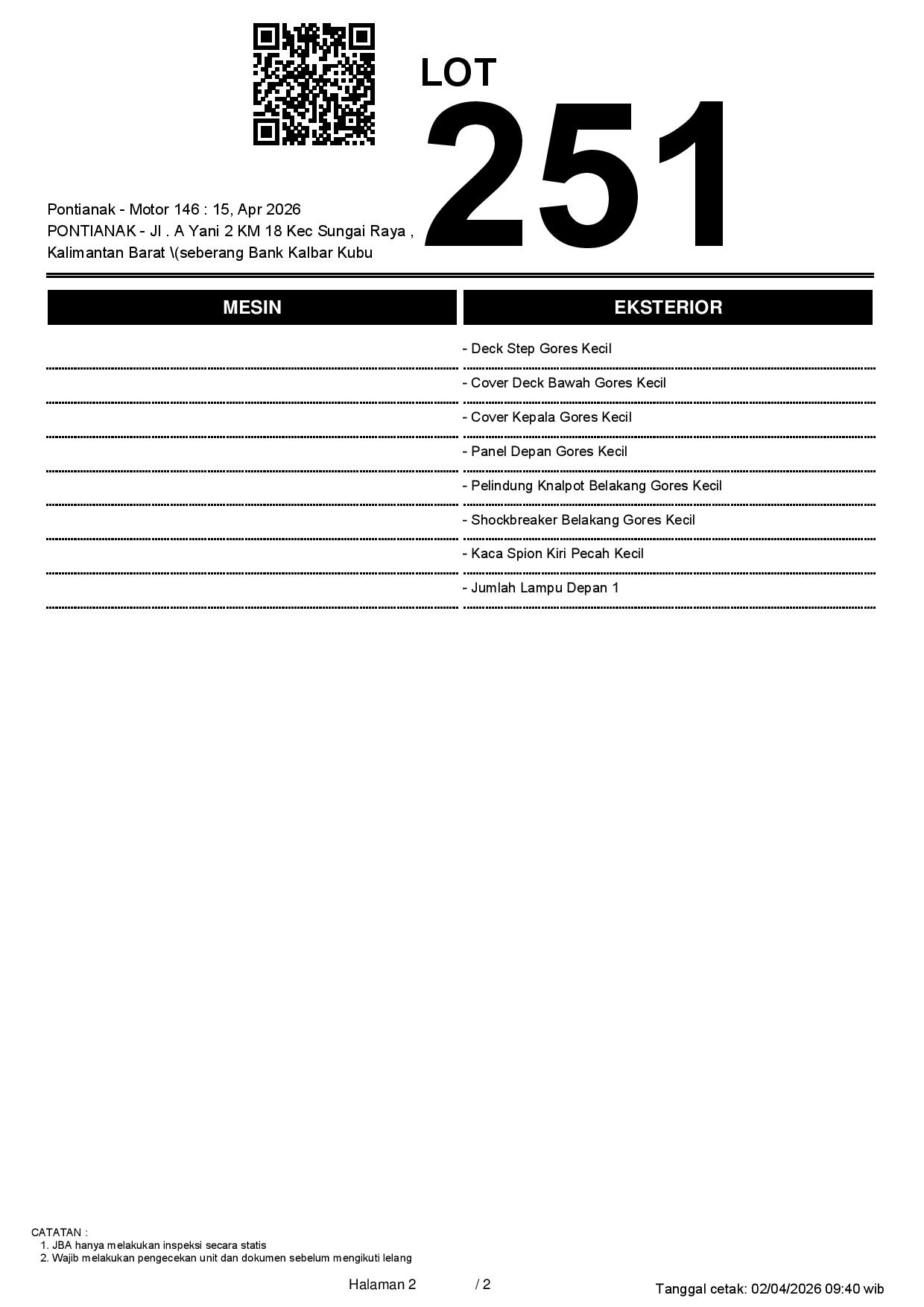 2. Peserta lelang wajib cek unit & dokumen