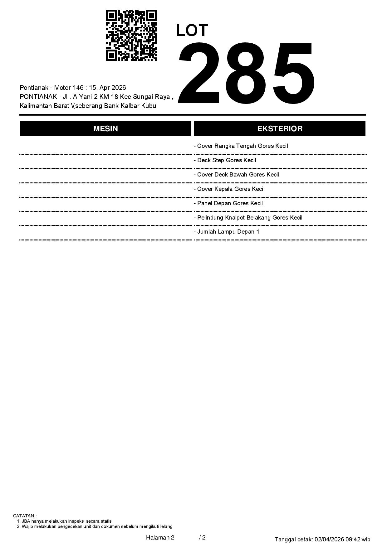 2. Peserta lelang wajib cek unit & dokumen