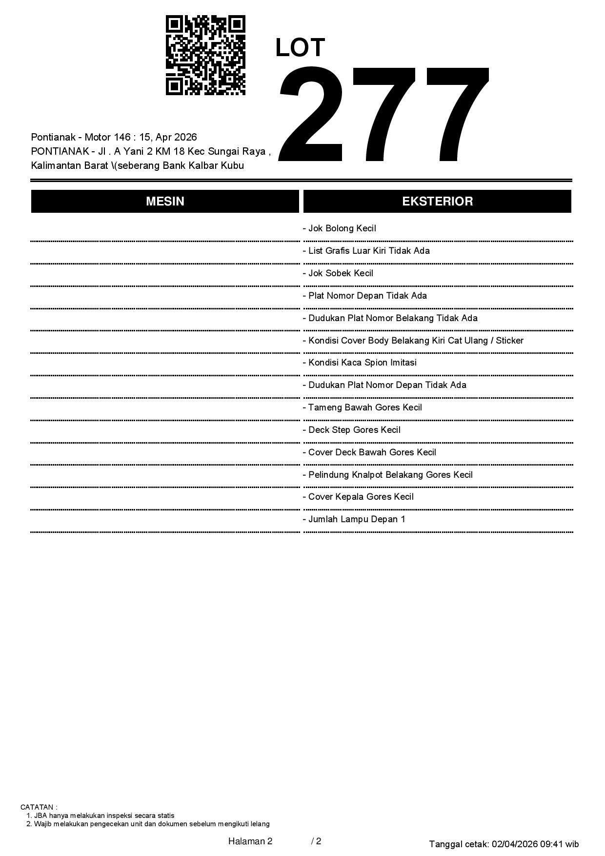 2. Peserta lelang wajib cek unit & dokumen