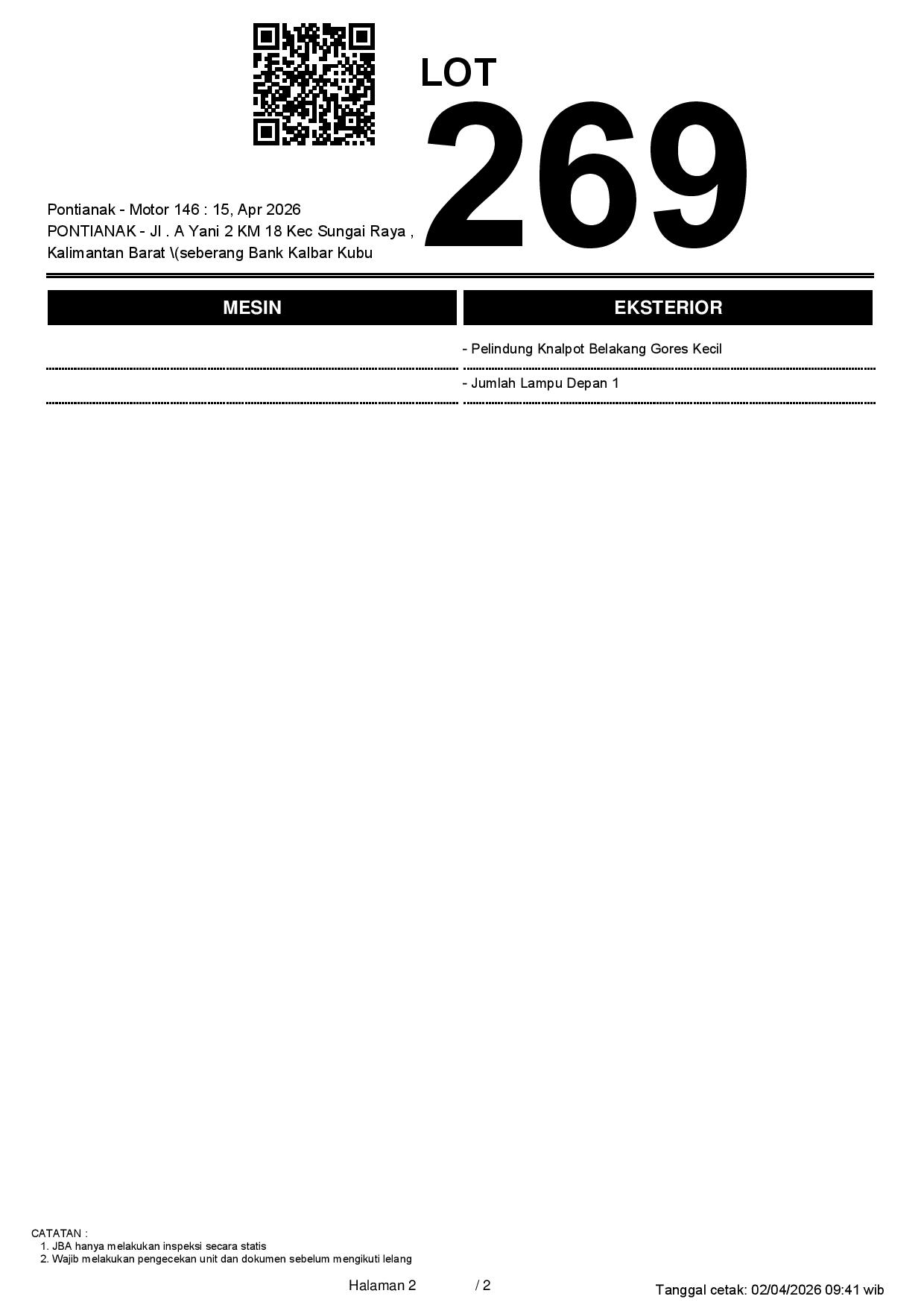 2. Peserta lelang wajib cek unit & dokumen