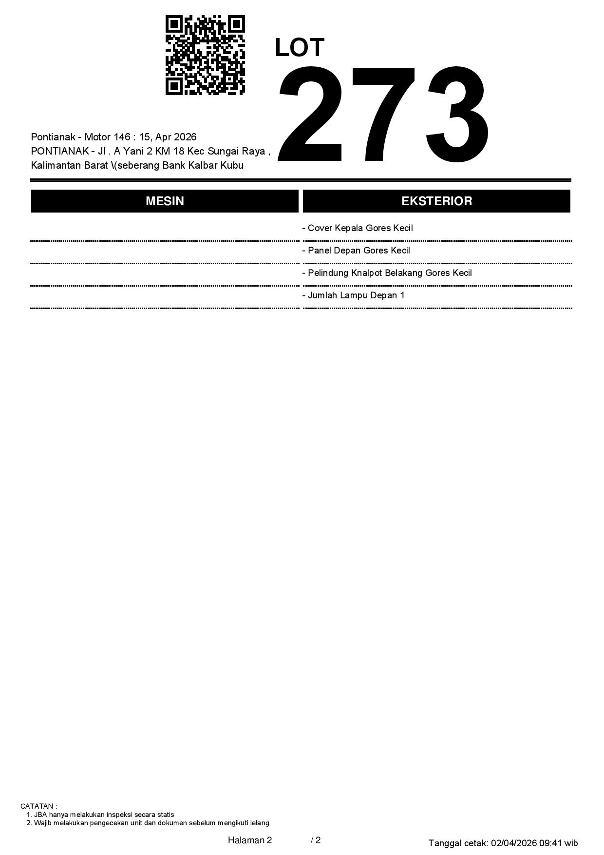 2. Peserta lelang wajib cek unit & dokumen