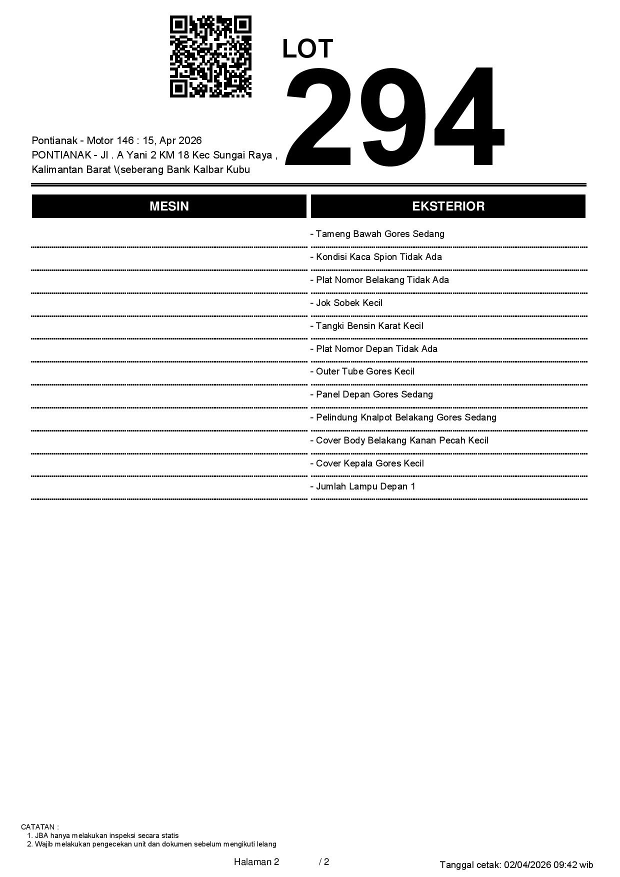 2. Peserta lelang wajib cek unit & dokumen