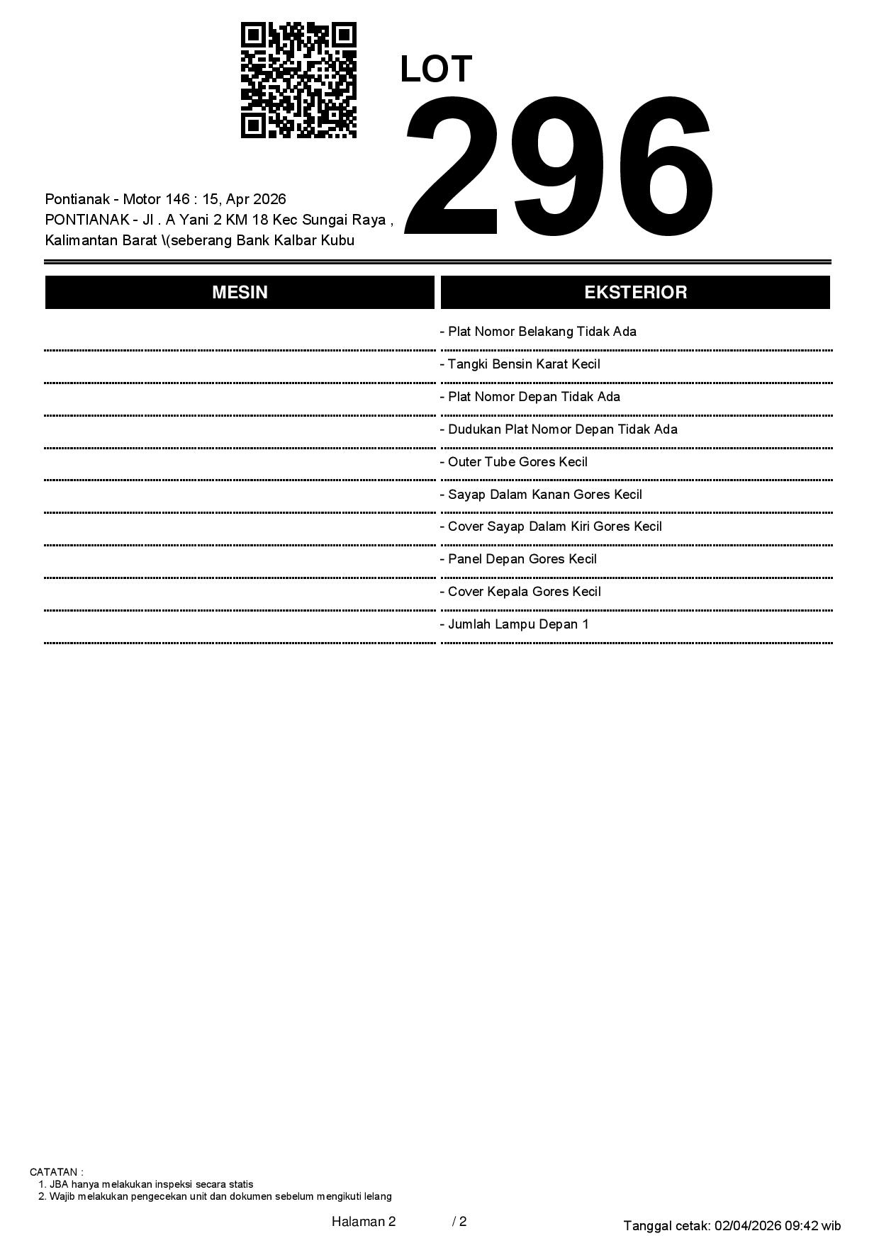 2. Peserta lelang wajib cek unit & dokumen
