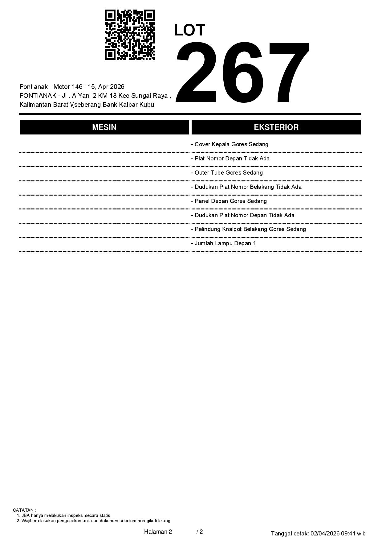 2. Peserta lelang wajib cek unit & dokumen